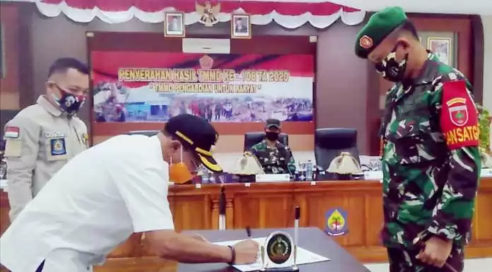 Acara penutupan TMMD ke 108 Kodim 1425 Jeneponto yang berlangsung di ruang Pola Panrannuangta Kantor Bupati Jeneponto, Rabu, 29 Juli 2020 dihadiri, Kasrem 141 Toddopuli, Letkol Inf Bobby Triyanto, Dandim 1425 Jeneponto, Letkol Inf Irfan Amir, Sekda Syafruddin Nurdin, Wakapolres Jeneponto, Kompol Marikar dan sejumlah Kepala OPD Pemkab Jeneponto.