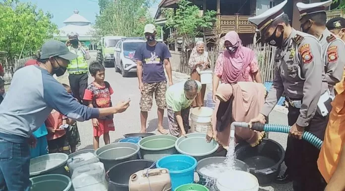 Terkini.id, Jeneponto - Satuan Lalulintas (Satlantas) Polres Jeneponto menyalurkan air bersih di Desa Bontosungguh Kecamatan Tamalatea Kabupaten Jeneponto, Kamis, 17 September 2020.