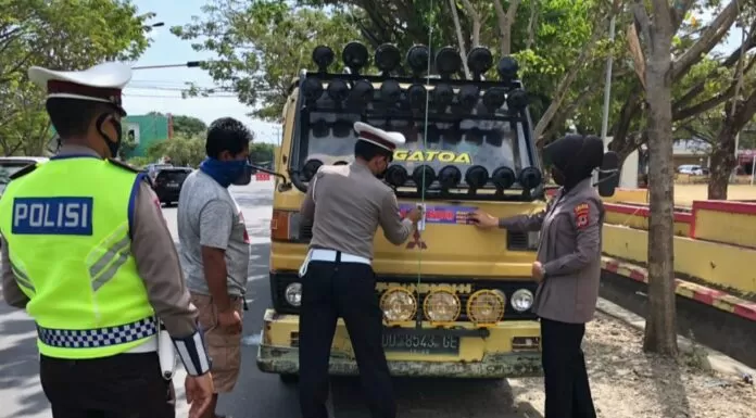 Stiker yang di pasang di kendaraan itu berisikan imbaua disiplin penerapan protokoler kesehatan dan sudah di beberapa lokasi.