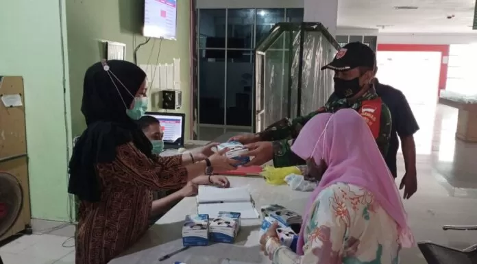 Terkini.id, Jeneponto - Kodim 1425 Jeneponto terus melakukan bakti sosial dalam mencegah penularan Covid-19, upaya pencegahan itu dilakukan dengan membandingkan masker kepada tenaga kesehatan di Rumah Sakitt Umum Daerah (RSUD) Lanto Daeng Pasewang, di jalan Ishak Iskandar, Kelurahan Empoang Selatan, Kecamatan Binamu, Kabupaten Jeneponto, Jumat, 27 November 2020.