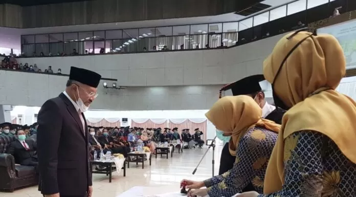 Rektor Universitas Pancasakti Dr.Rusdin Nawi menyampaikan ucapan terima kasih kepada Bupati Jeneponto, Iksan Iskandar atas kesediaannya hadir menjadi tamu kehormatan di rapat senat terbuka luar biasa Universitas Pancasakti Makassar.