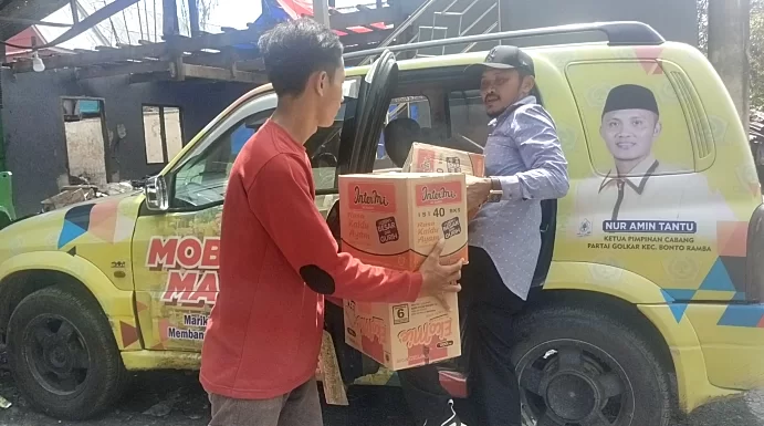 Terkini.id, Jeneponto - Anggota Dewan Perwakilan Rakyat Daerah (DPRD) dari fraksi Golkar, Nur Amin Tantu serahkan bantuan kepada korban kebakaran di Pammanjengan, Kelurahan Bonto Tangnga, Kecamatan Tamalatea, Kabupaten Jeneponto, Sulawesi Selatan, Kamis, 17 Maret 2022.