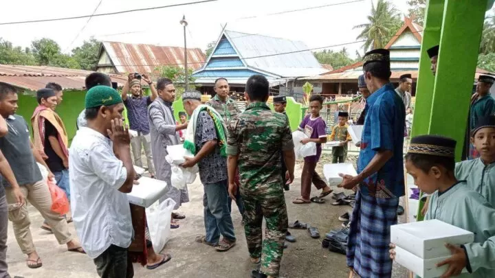 Usai shalat Jumat, semua jamaah Jumat menerima bingkisan nasi kotak yang dibagikan oleh personil Satgas TMMD 116.