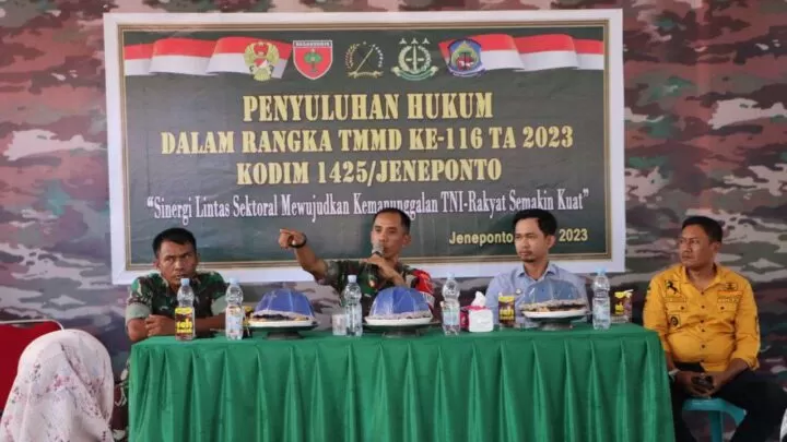 Terkini.id, Jeneponto - Satgas TNI Manunggal Membangun Desa (TMMD) ke-116 Kodim 1425 Jeneponto tidak hanya melakukan pembangunan fisik, namun juga melaksanakan program non fisik. Salah satunya penyuluhan hukum bagi masyarakat.