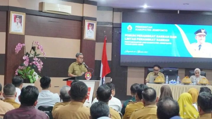 Terkini, Jeneponto — Bupati Jeneponto, H. Paris Yasir, secara resmi membuka Forum Perangkat Daerah dan Lintas Perangkat Daerah dalam rangka penyusunan Rencana Pembangunan Jangka Menengah Daerah (RPJMD) Kabupaten Jeneponto Tahun 2025–2029. Kegiatan tersebut berlangsung di Aula Kalabbirang, Rumah Jabatan Bupati Jeneponto, Rabu, 27 Agustus 2025.
